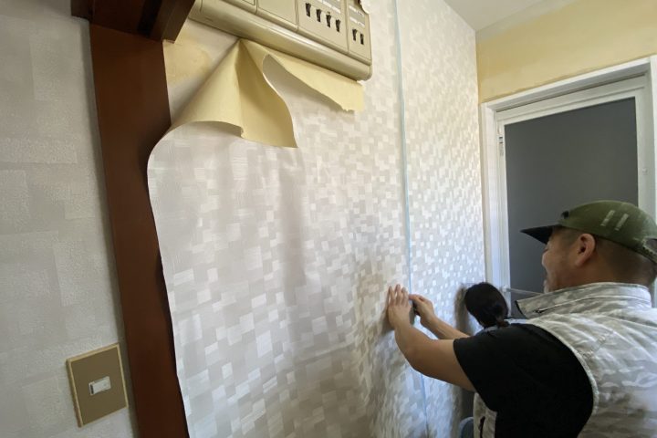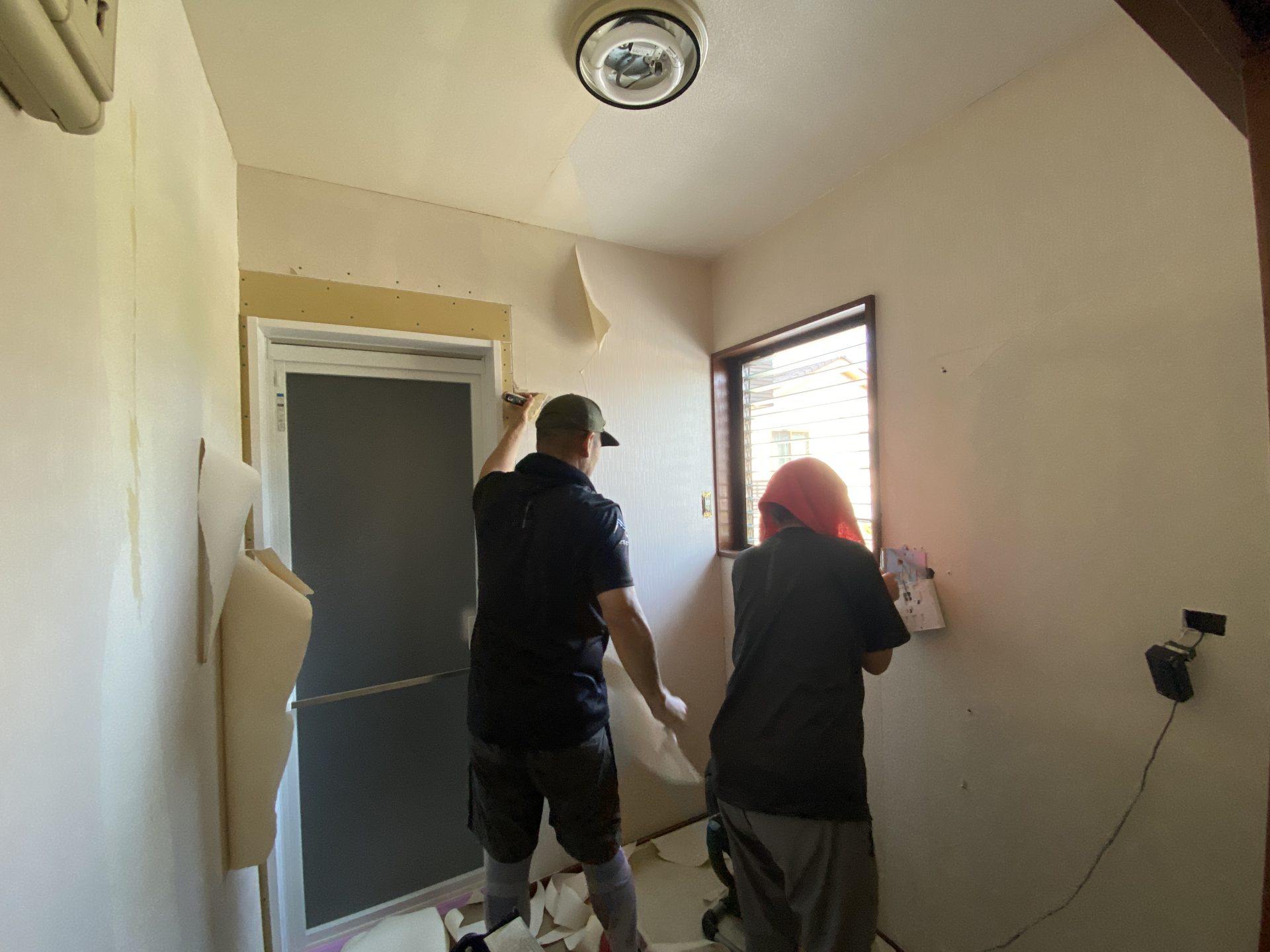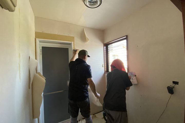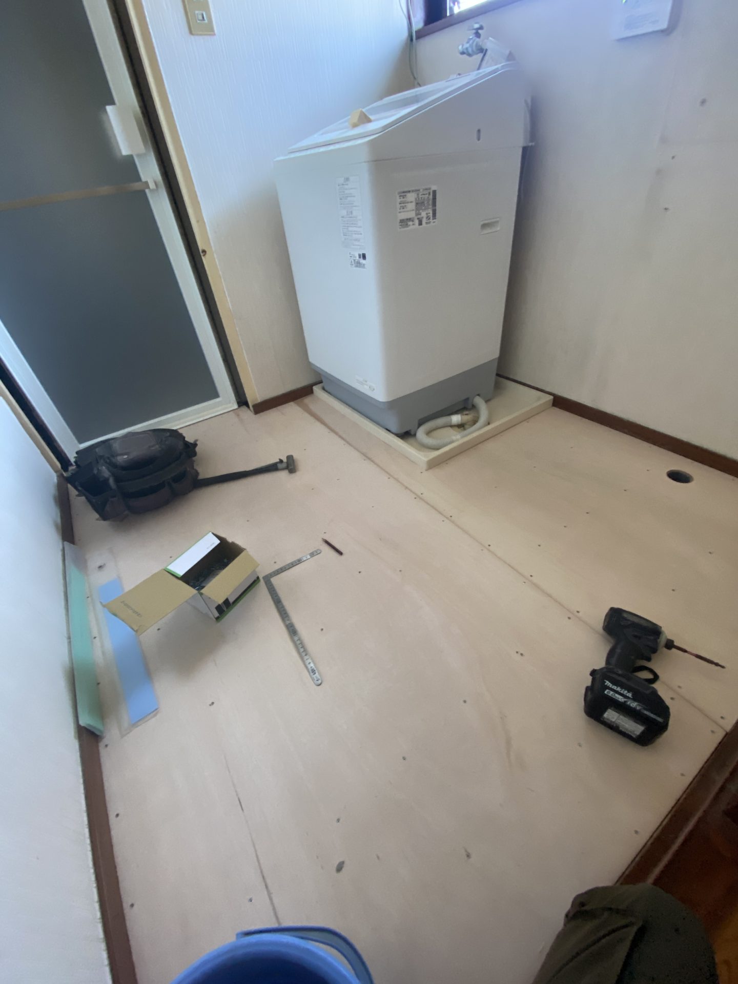 既存床の上に新たな床下地を施工、床クッションフロアー、壁、天井のクロスを張り替え、まるで新築の様に生まれ変わりました。