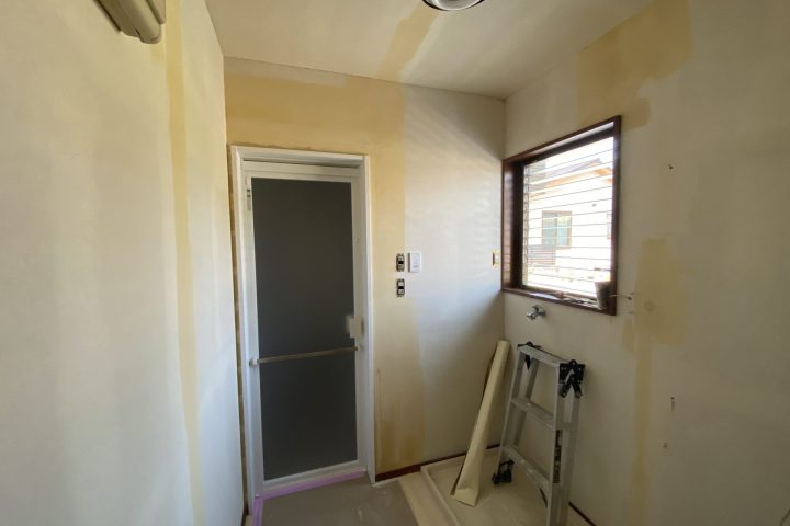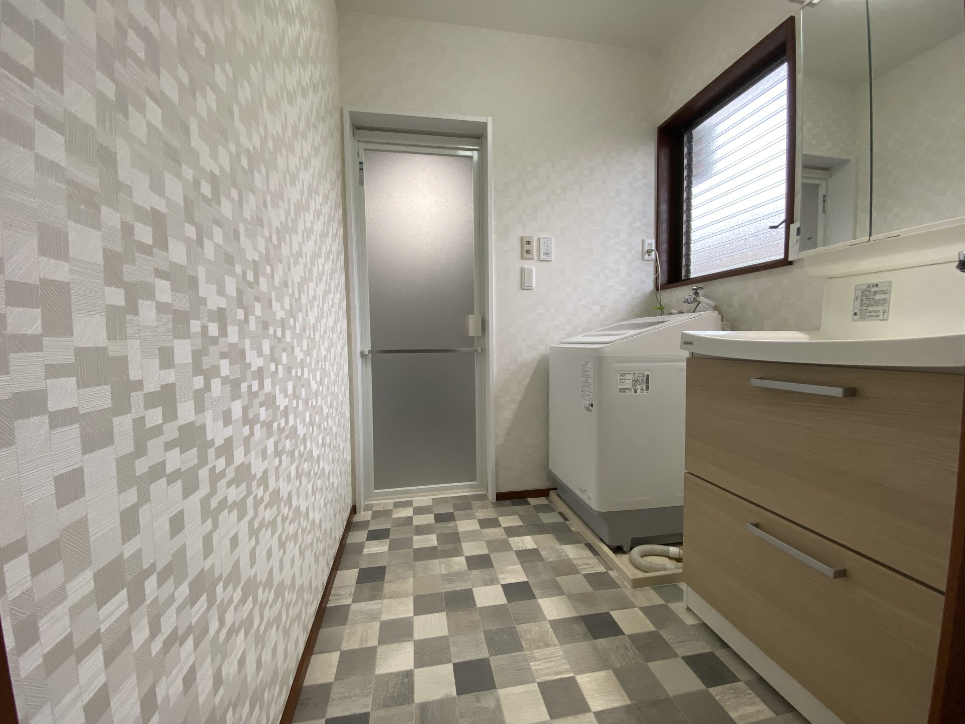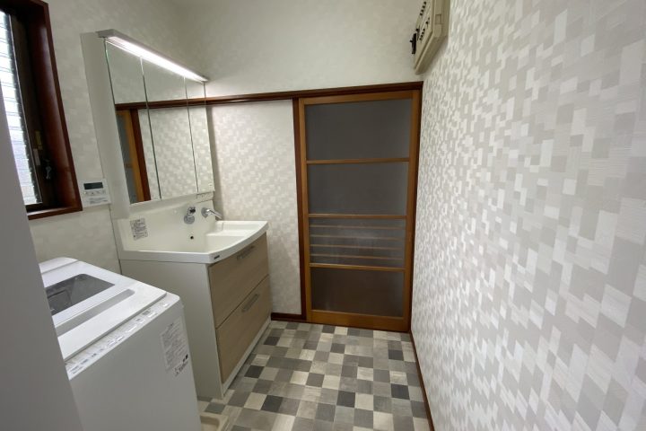 洗面所リフォーム、クロス張り替え工事を行いました。