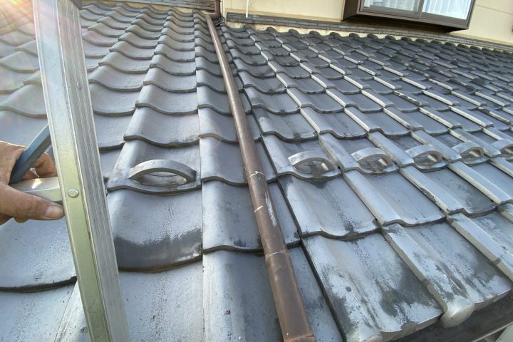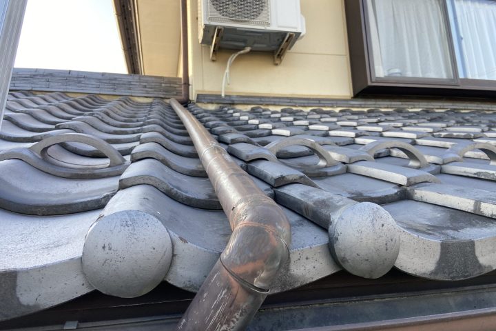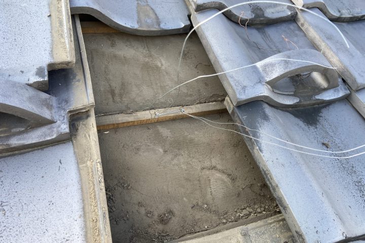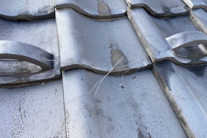 瓦を外し、ステンレスの針金を固定、樋をしっかりと固定致しました。