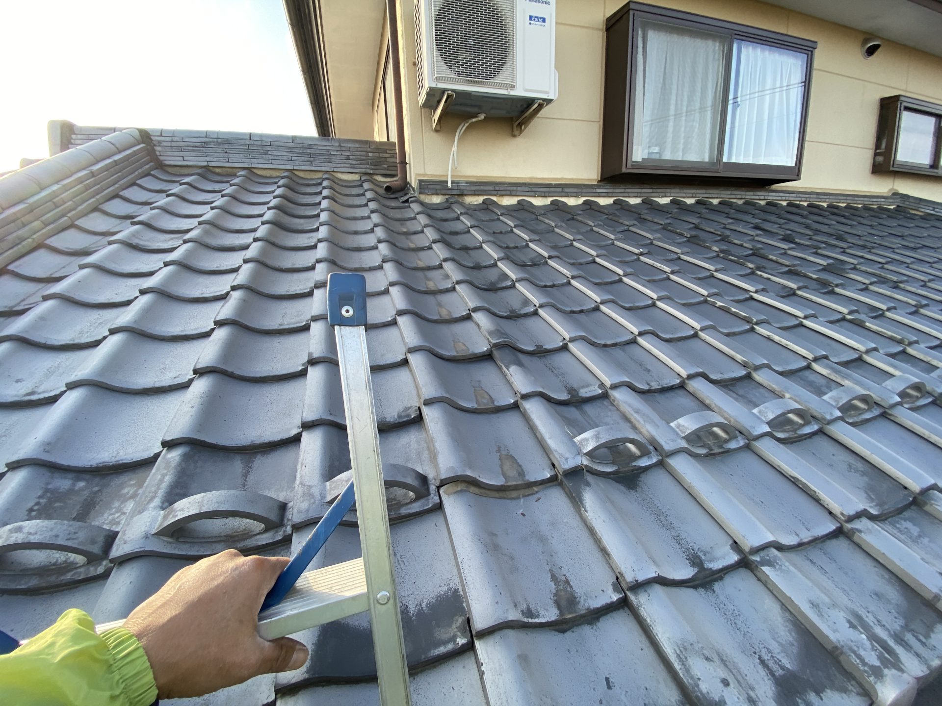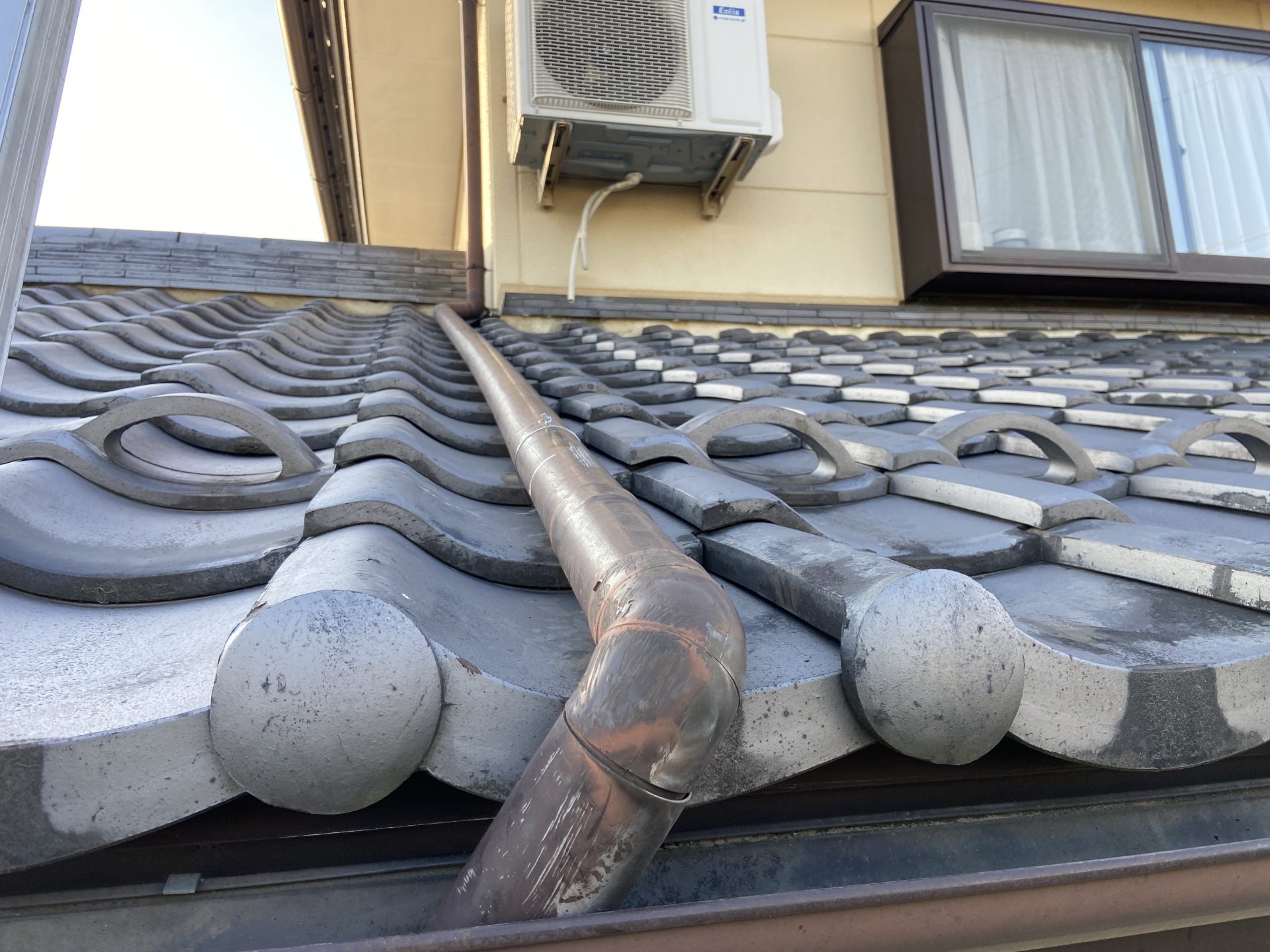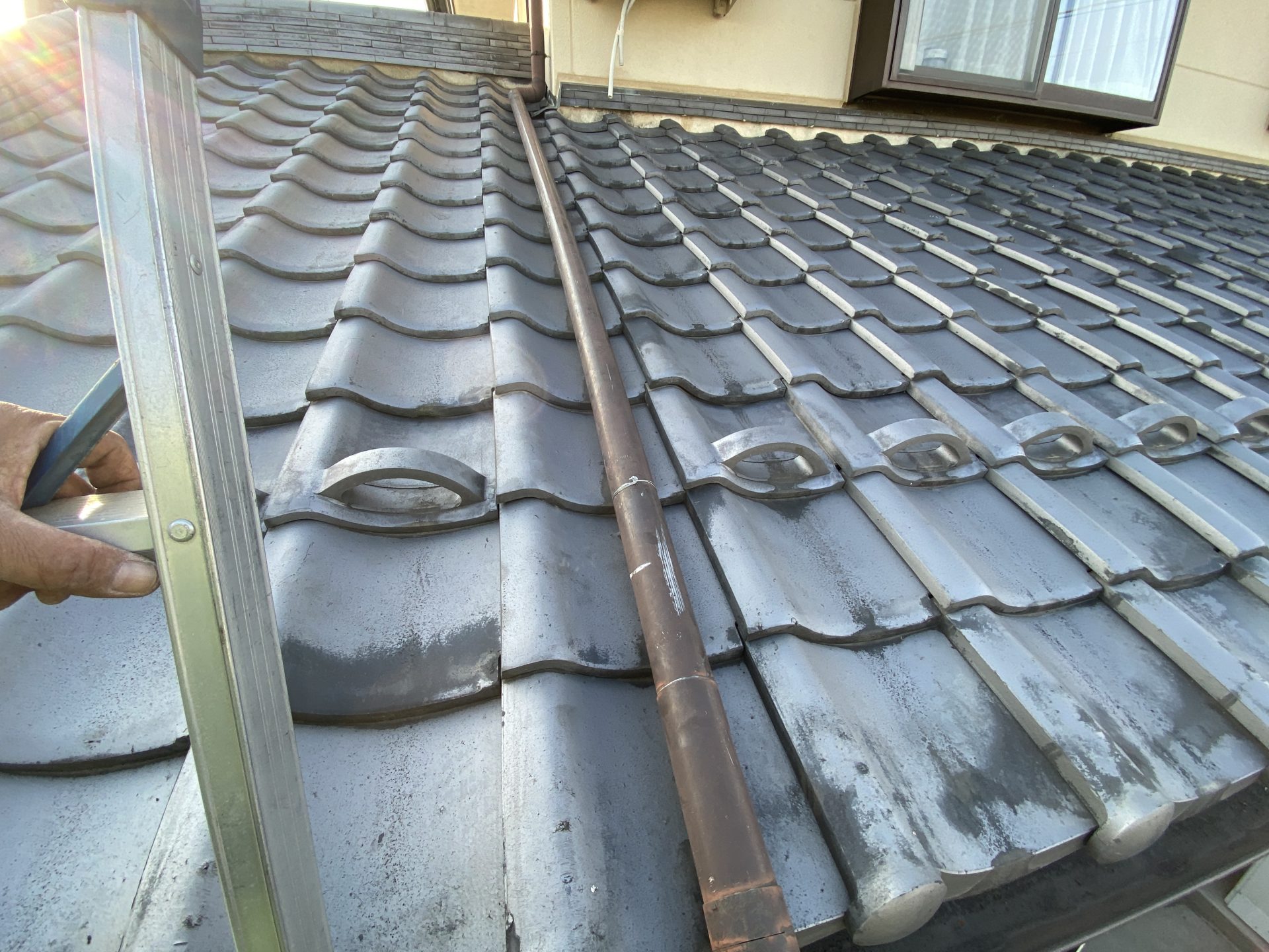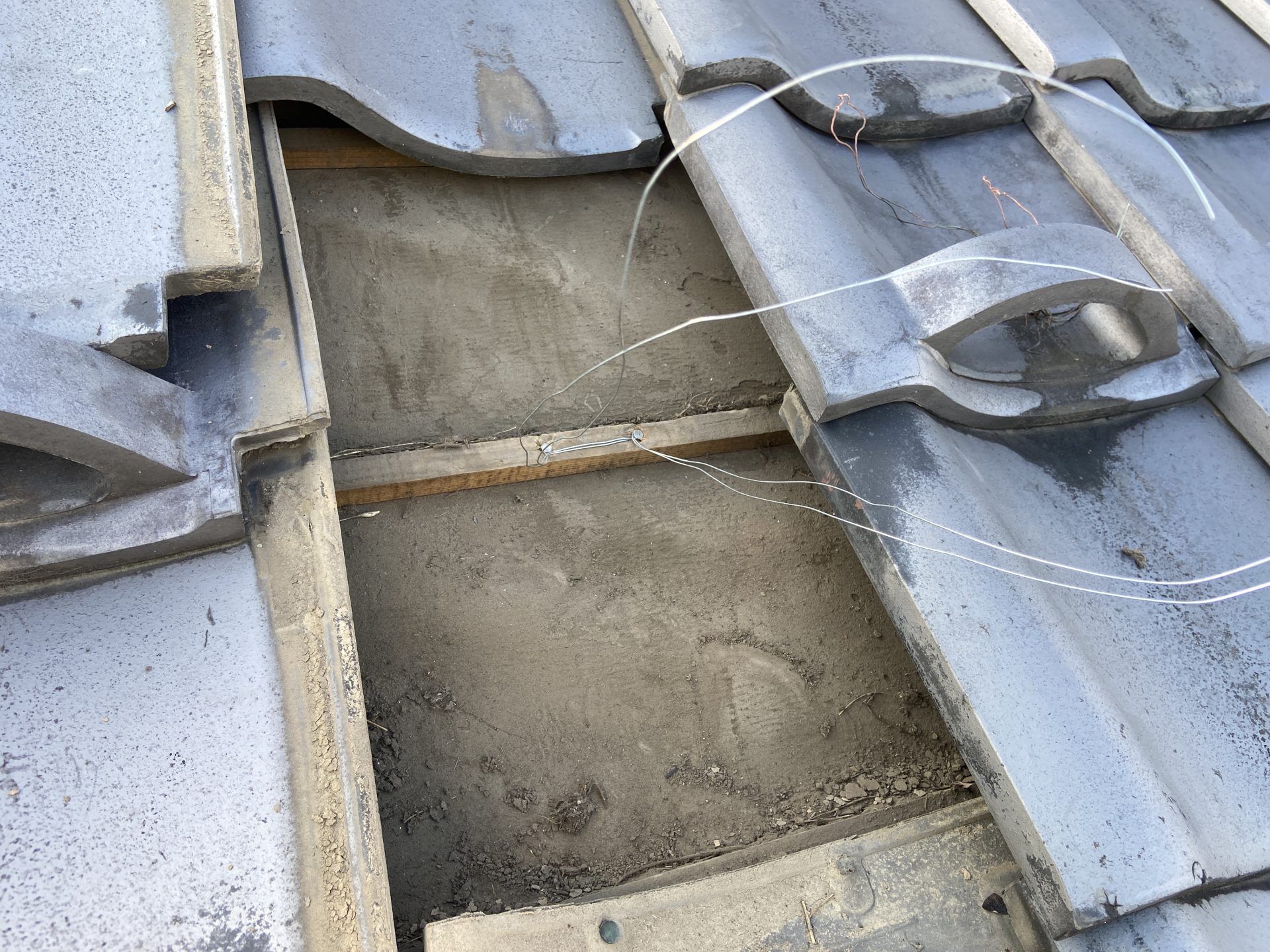 瓦を外し、ステンレスの針金を固定、樋をしっかりと固定致しました。